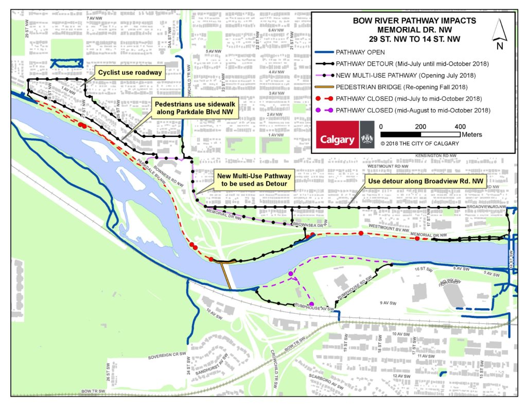 Bow River Pathway Closures and Detours through Parkdale